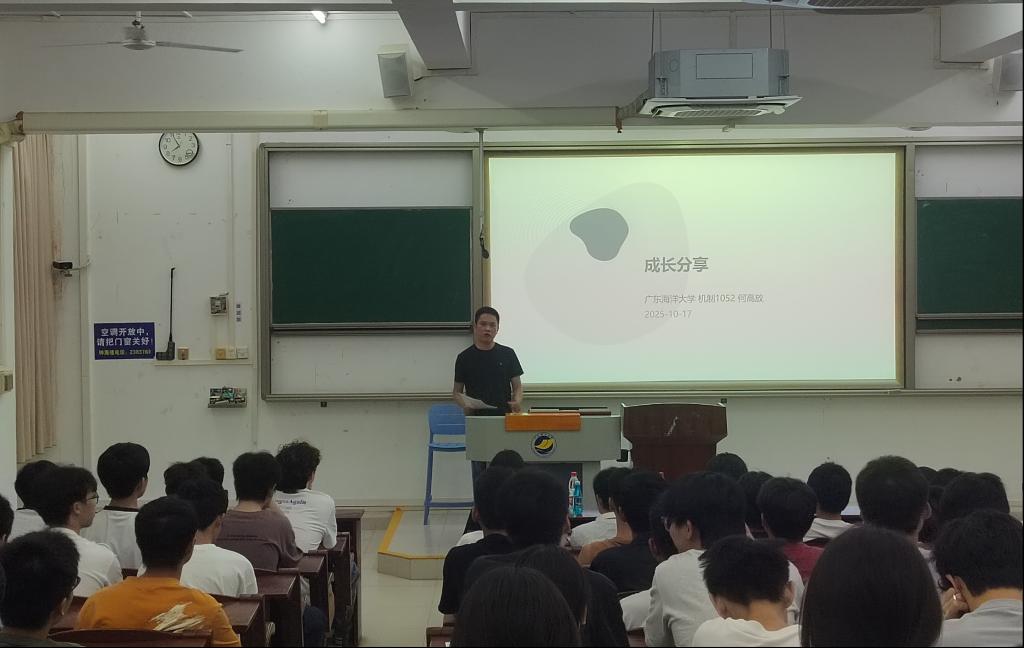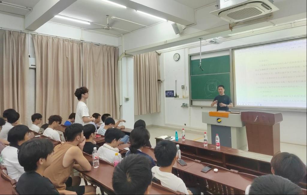 活动的另一高潮是优秀校友分享环节。我院杰出校友、现任广东百源实业有限公司首席增长官(CGO)何高放先生受邀担任分享嘉宾。他以学长身份深情回顾了在校期间参与科创竞赛对其职业发展的深远影响,结合自身从校园到职场的成长轨迹,分享了职业规划、能力培养与职场心态的独到见解。幽默风趣的表达与“干货满满”的内容引发同学们强烈共鸣,互动环节中大家争相提问,何高放先生一一耐心解答,现场气氛持续升温。
