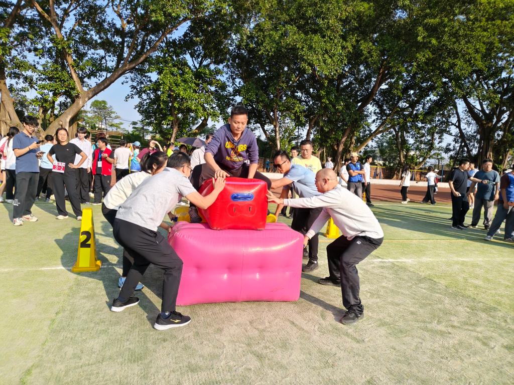集体项目中,我院教职工尽显团队风采。“八仙过海”项目里,队员们配合高效、技巧娴熟,成功摘得桂冠;“多人多足”项目中,大家步调一致、默契十足,快速冲线荣获季军;“河马过桥”项目中,队员们全力以赴、永不言弃,展现出顽强斗志,最终取得第六名。