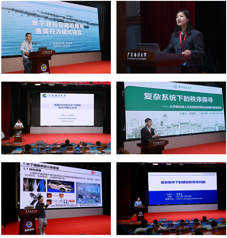 随后,在专家报告环节中,多位学者围绕海洋机器人关键技术进行了分享。金年会官网刘洺辛教授、佛山大学蒋玲莉教授与大连海洋大学白伟伟副教授分别围绕检测识别、轴承保障和离散系统控制等方面研究进行了详细的论述与探讨。此外,华南农业大学曹亚超博士、广西大学万振华博士和北京航空航天大学姜亚龙博士分享了以并联机器人、水下偏振视觉与多要素感知为题的相关研究。