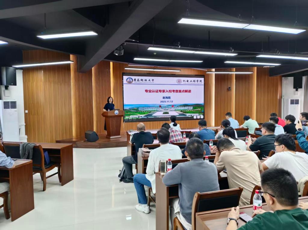 为迎接12月7日工程教育专业认证专家入校考查,全面做好认证准备工作,2025年11月12日下午,金年会app官方网在海创楼(创新创业学院)303室举行了工程教育专业认证专家入校考查专题培训会,教育部工程教育认证专家青岛科技大学赵海霞教授做了《专业认证专家入校考查重点解读》主题报告,学院领导、机制专业必修课任课教师及其他相关教师参加了会议,会议由刘强副院长主持。