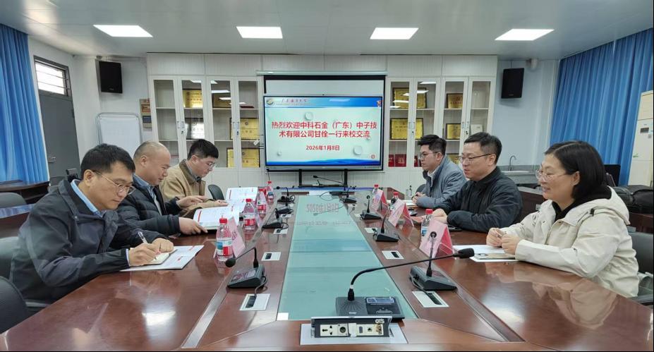 1月8日下午,中科石金(广东)中子技术有限公司执行总裁甘佺一行3人到访学院交流座谈,双方围绕产学研协同创新、人才培养、成果转化等关键领域深入磋商,达成系列合作共识,明确将加快推进合作协议签署,推动校企合作落地见效。学院院长刘海涛等领导热情接待并参加座谈。