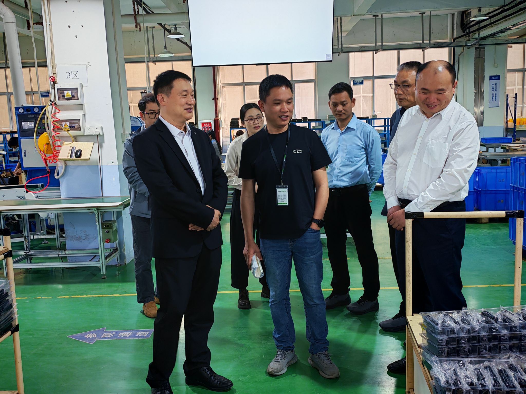 鲁义善一行走访了广东百源实业有限公司,在企业负责人梁兵的陪同下,实地参观了生产装配车间、研发实验室及产品展厅,深入了解企业生产流程、技术研发方向、市场布局规划及人才需求等情况。在座谈会上,梁兵介绍了企业发展历程与企业文化。鲁义善表示,此次走访是深化校企合作的重要举措,也是向企业学习先进管理经验的良好契机,学校将以此次交流为纽带,推动教学科研与产业发展需求深度融合,不断提升人才培养质量,为企业高质量发展输送更多优秀人才。双方就深化校企合作达成初步共识,将在共建就业实习基地、开展“订单班”人才培养、邀请企业专家进校指导、合作办好工业设计大赛等方面加强联动,推动产教融合落地见效。